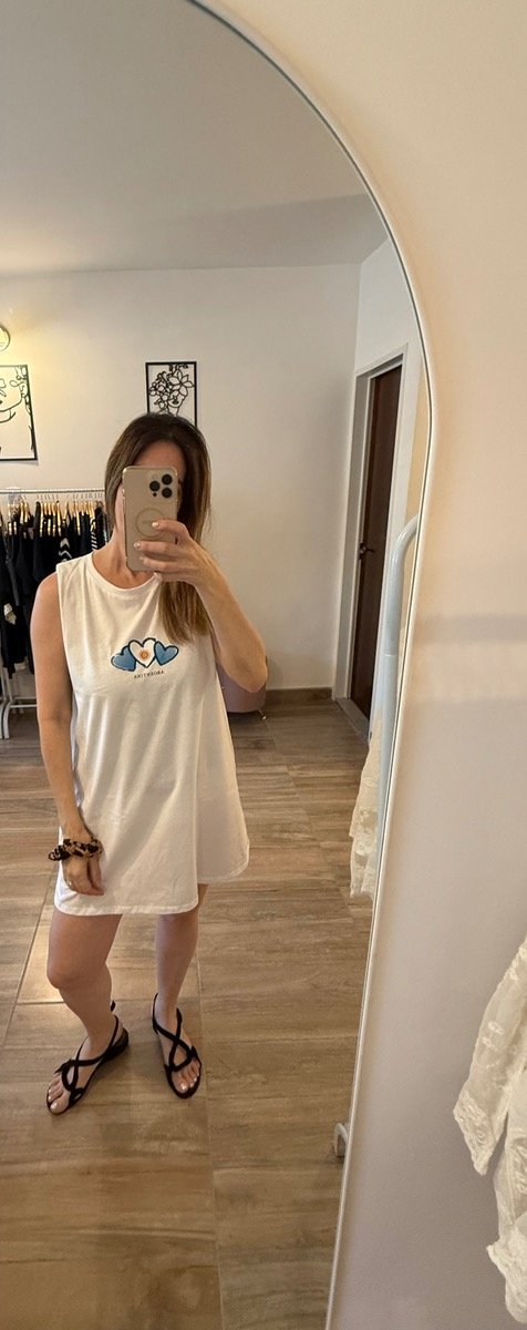 De calce relajado, sin mangas, ideal para los días de calor y para usar tanto en casa como para salir.
