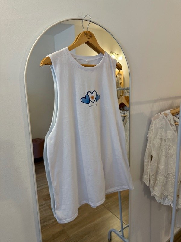 Vestido sudadera de algodón en blanco con estampa en espalda de nuestra cultura Argentina y tres corazones delanteros.