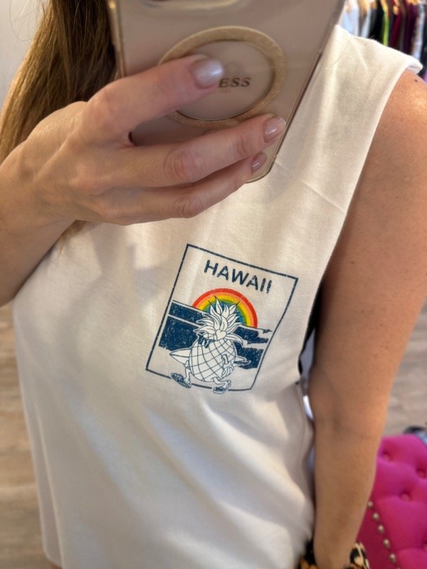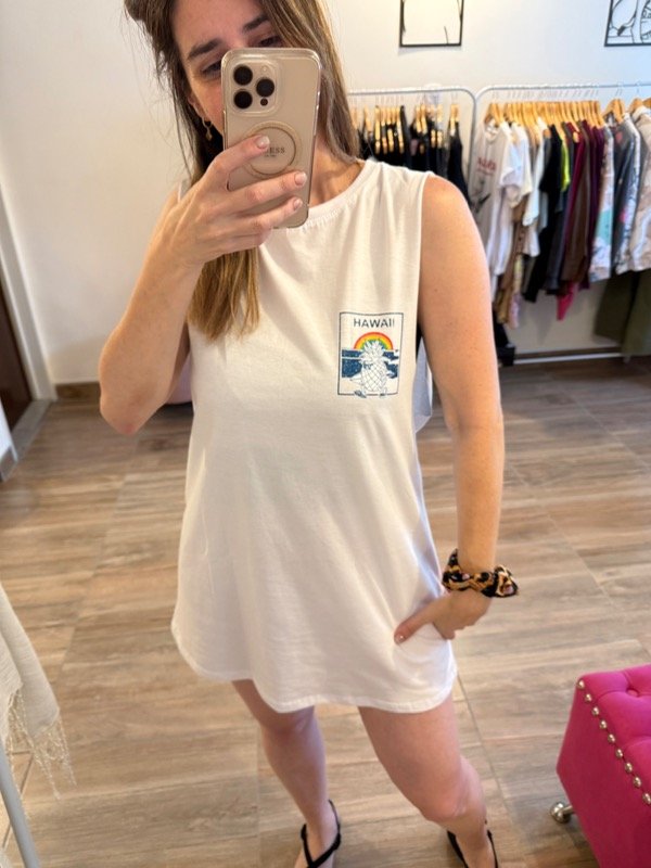 Vestido sudadera de algodón en blanco con estampa en espalda de Hawai.