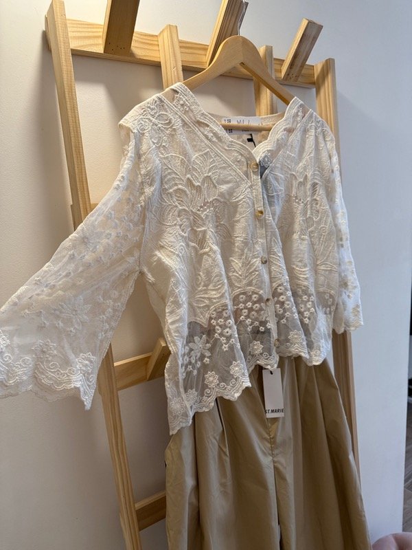 Delicado y atemporal, Eliane es un saquito de encaje en color natural que aporta un aire romántico a cualquier look. Su diseño liviano y femenino lo convierte en la prenda ideal para superponer en los días frescos o para dar un toque elegante a tus looks.