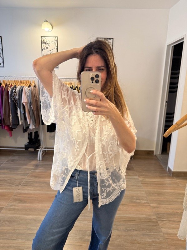 Liviano, delicado y con un diseño floral en relieve, aporta textura y movimiento. Tiene manga amplia tipo murciélago y terminaciones con guardas trabajadas que lo hacen súper especial. Ideal para sumar sobre básicos, vestidos o jeans y darle un plus instantáneo al outfit.