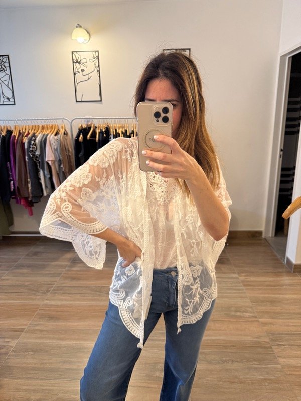 Nuestro kimono de encaje es ese toque elegante que levanta cualquier look.