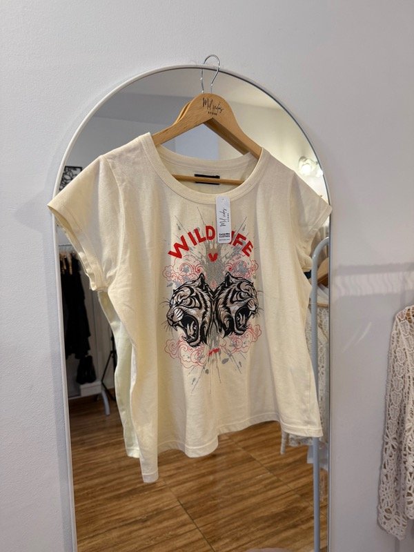 Remera confeccionada en jersey de algodón, con escote redondo y manga corta.