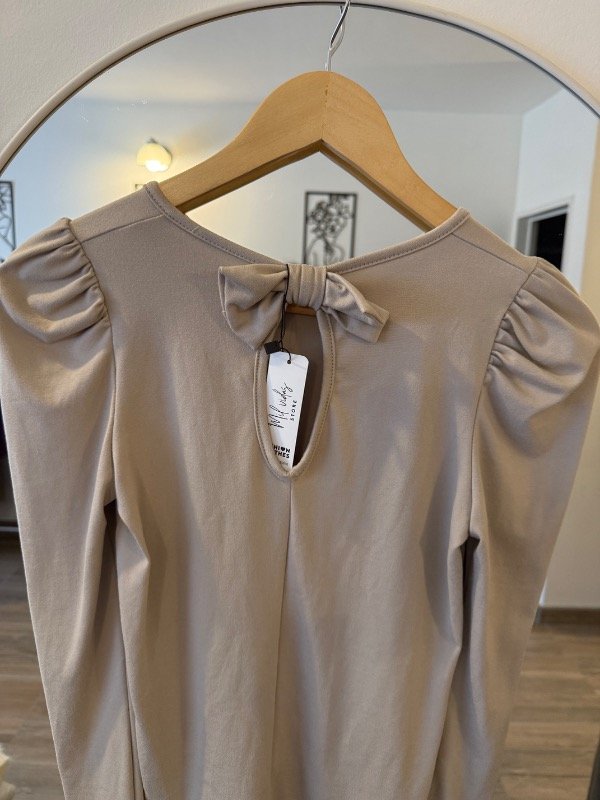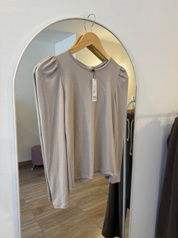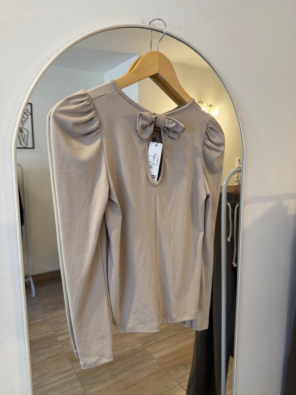 Remera manga larga de excelente de calidad de modal soft con detalle de moño atrás en el cuello y mangas princesa color beige