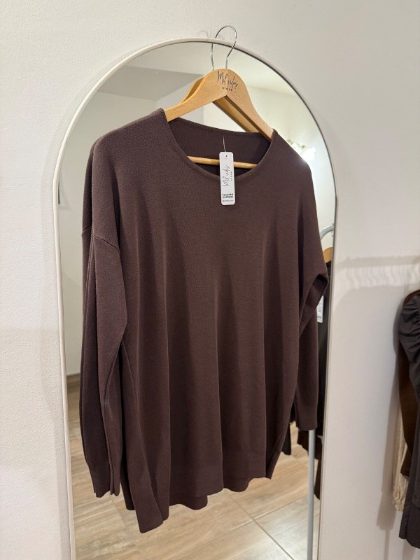 El sweater Lauren es de esos esenciales que no pueden faltar. Con su tejido liviano y su tono chocolate, suma calidez y estilo a cualquier look sin esfuerzo. Cómodo y fácil de combinar!