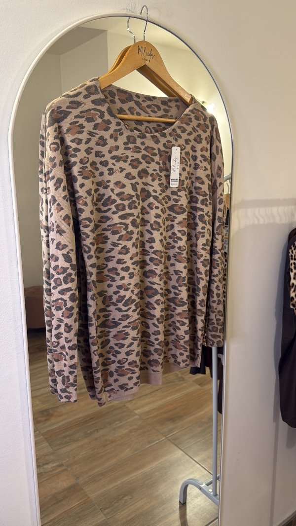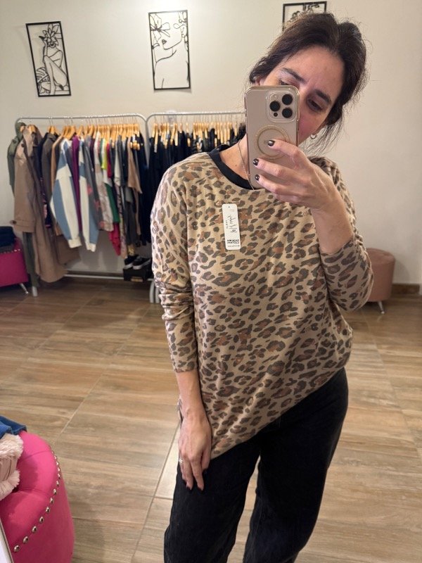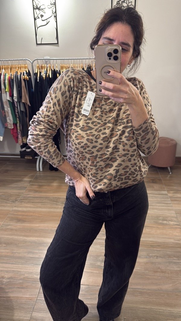 El sweater Nelia es perfecto para levantar cualquier outfit. Con su estampa animal print y su tejido liviano, es cómodo, versátil y con mucha actitud. Ideal para las que quieren un toque distinto sin perder comodidad.