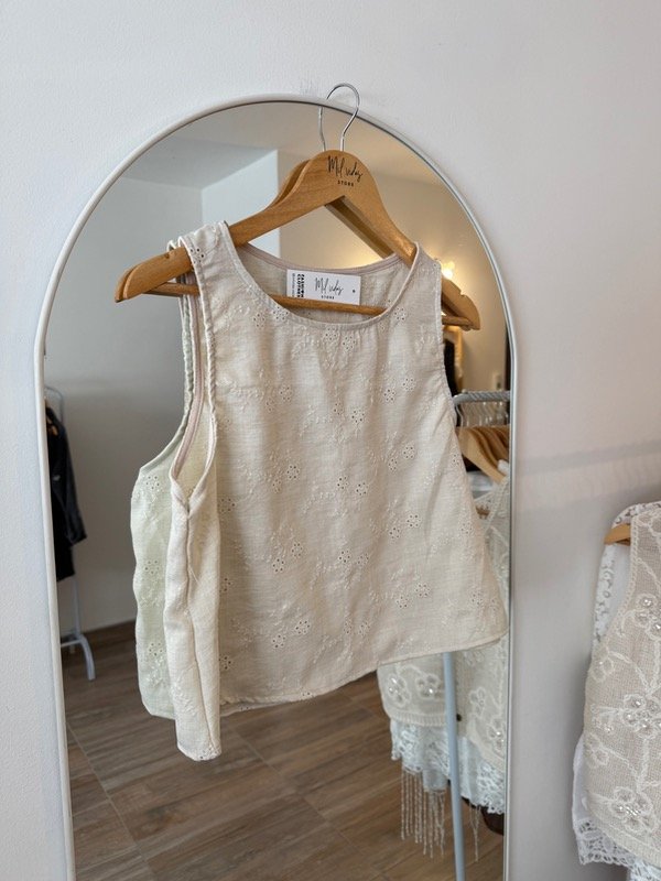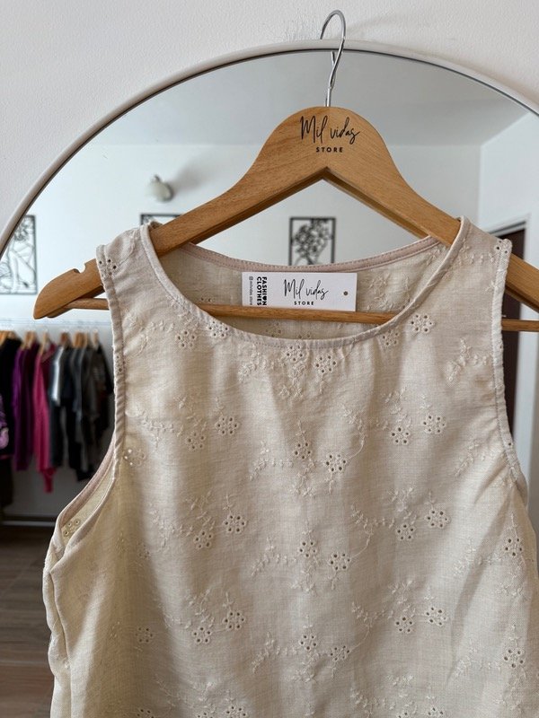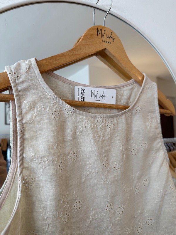 Delicada y femenina, la blusa Vera en beige está confeccionada en algodón bordado con diseño floral calado. Su corte recto y liviano la hace ideal para los días cálidos, aportando un toque romántico y natural a cualquier look. Combinala con jeans, shorts, bermudas o faldas para un estilo fresco y versátil.