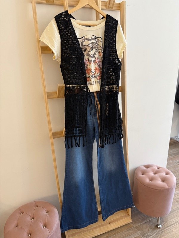 Un clásico con alma boho. El chaleco Romancia está tejido en crochet artesanal, con un diseño abierto que aporta textura y un toque relajado a cualquier look.