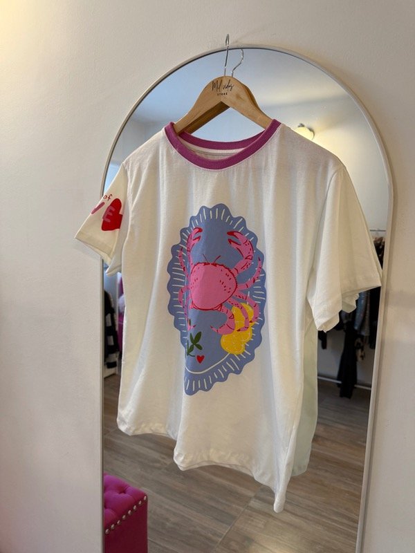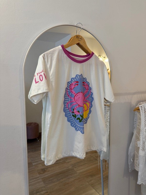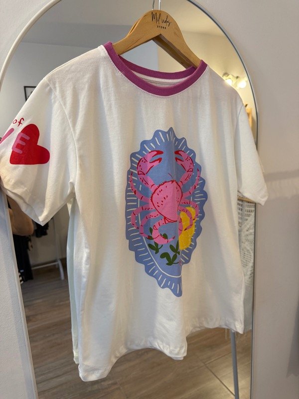 Remera de escote redondo con estampa en delantero y en una de las mangas.